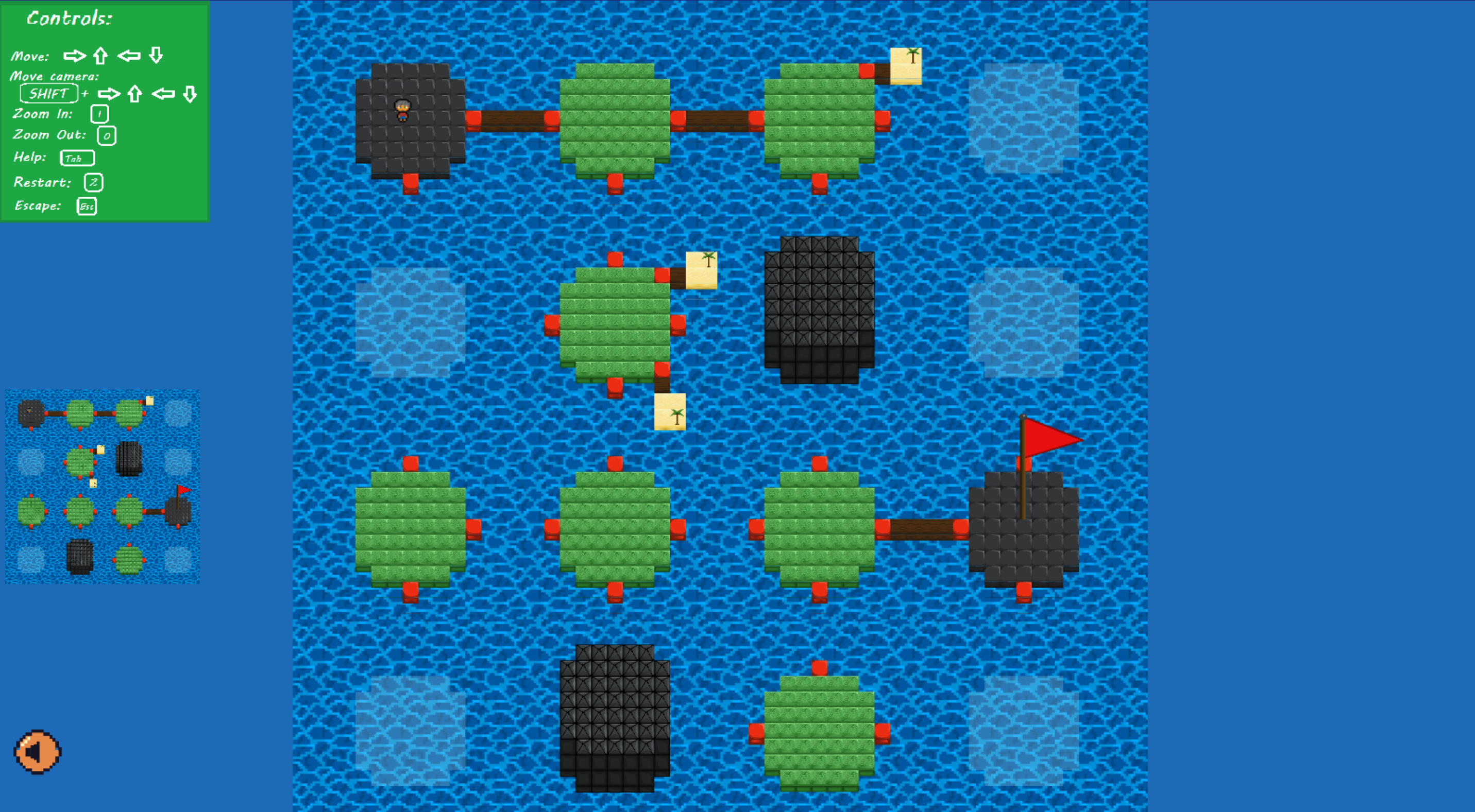 Erbaue Brücken, verschiebe Inseln & kreiere neue Wege! Die Aufgabe des Spielers ist es, sich den Weg übers Meer zum Ziel zu bauen. Mittels der Graphenersetzung bekommt er mehrere Optionen, um mit den zur Verfügung stehenden Ressourcen und strategischem Nachdenken das Ziel zu erreichen. Schaffst du es?